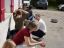 Nach so viel Theorie war es Zeit für das Mittagessen – die Sonne war herausgekommen, und so bauten wir vor der Tür in der Sonne die Biertische auf. Einige Mütter hatten Spaghetti gekocht, wir ließen es uns schmecken und genossen die Sonnenstrahlen. Bald war es wieder Zeit für den zweiten, den aktiven Teil des Workshops, den wir nun auch draußen durchführen konnten.